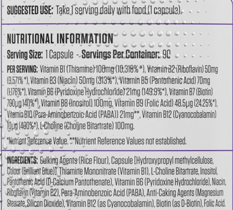 An extra high potency Vitamin B-Complex made up of several vitamins that work well together to support nervous system health and promote energy metabolism.