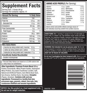 NITRO-TECH® contains 30 grams of protein, primarily whey protein isolate, ultra-filtered whey proteinconecntrate and hydrolyzed whey protein isolate, with only 2 grams of carbs and 1.5 grams of fat!