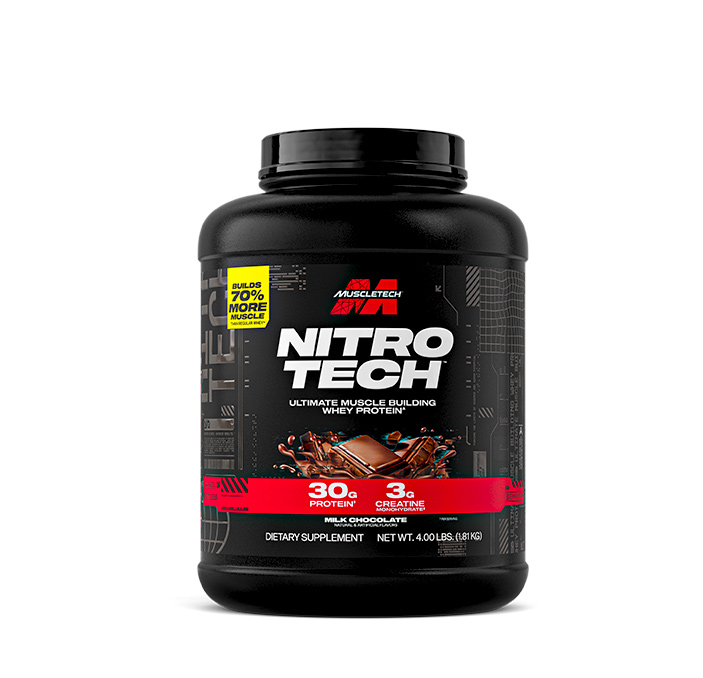 Nitro-Tech is a scientifically engineered, enhanced whey protein formula designed for all athletes who are looking for more muscle, more strength and better performance. Nitro-Tech contains protein sourced primarily from whey protein isolate and whey peptides – two of the cleanest and purest protein sources available. Other whey protein supplements might have only a few grams of these highly bioavailable and easily digested proteins. Nitro-Tech® is also enhanced with the most studied form of creatine for even better gains in muscle and strength.*