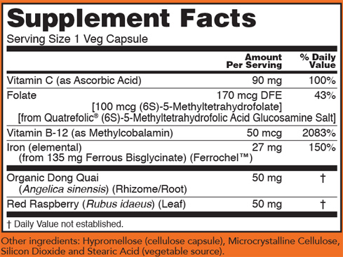 NOW® Iron Complex is a unique blend of Ferrochel™ Iron (a bioavailable form of iron) and its important co-nutrients combined with complementary botanicals. Iron is a mineral required for the formation of hemoglobin, a molecule that transports oxygen to the cells throughout the body in red blood cells.* Vitamin B-12 and folate are necessary for red blood cell production, while vitamin C is known to enhance iron absorption from the GI tract.* This vegetarian formula is well-tolerated and non-constipating and has been designed to maximize iron absorption and utilization by the body.*