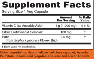 Vitamin C is a water soluble nutrient well known for its vital role in the immune system.* Vitamin C is also necessary for the production of collagen (a structural protein in connective tissue) and is therefore important for skin, bone, and joint health.* Vitamin C is needed for amino acid metabolism, neurotransmitter synthesis, and the utilization of many nutrients, such as folic acid and iron.* It is also a highly effective antioxidant that can help maintain healthy tissues by neutralizing free radicals generated during normal metabolism and exposure to environmental stressors.* This product includes bioflavonoids, which work synergistically to support vitamin C utilization.*