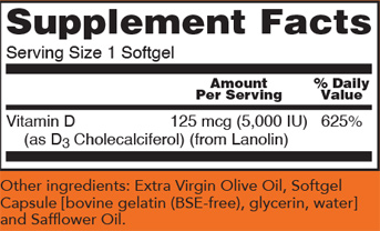 NOW® Vitamin D3 softgels supply this key vitamin in a highly-absorbable liquid softgel form. Vitamin D is normally obtained from the diet or produced by the skin from the ultraviolet energy of the sun. However, it is not abundant in food. As more people avoid sun exposure, vitamin D supplementation becomes even more necessary to ensure that your body receives an adequate supply.