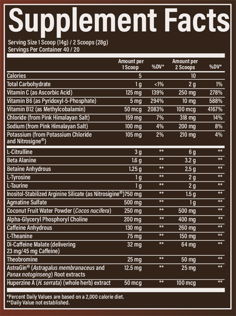 Our formula was formulated and engineered with some of the market's most powerful and trusted ingredients like L-Tyrosine, Beta Alanine, Arginine Nitrate, Huperzine A, Alpha GPC, and Bitter Orange. The synergistic effects of these ingredients aid in improved cellular hydration, enhanced mental focus, spiked energy production, optimized blood flow, and amplified fat burning. If you’re looking to buy the best all-in-one pre-workout supplement, you’ve met your match.